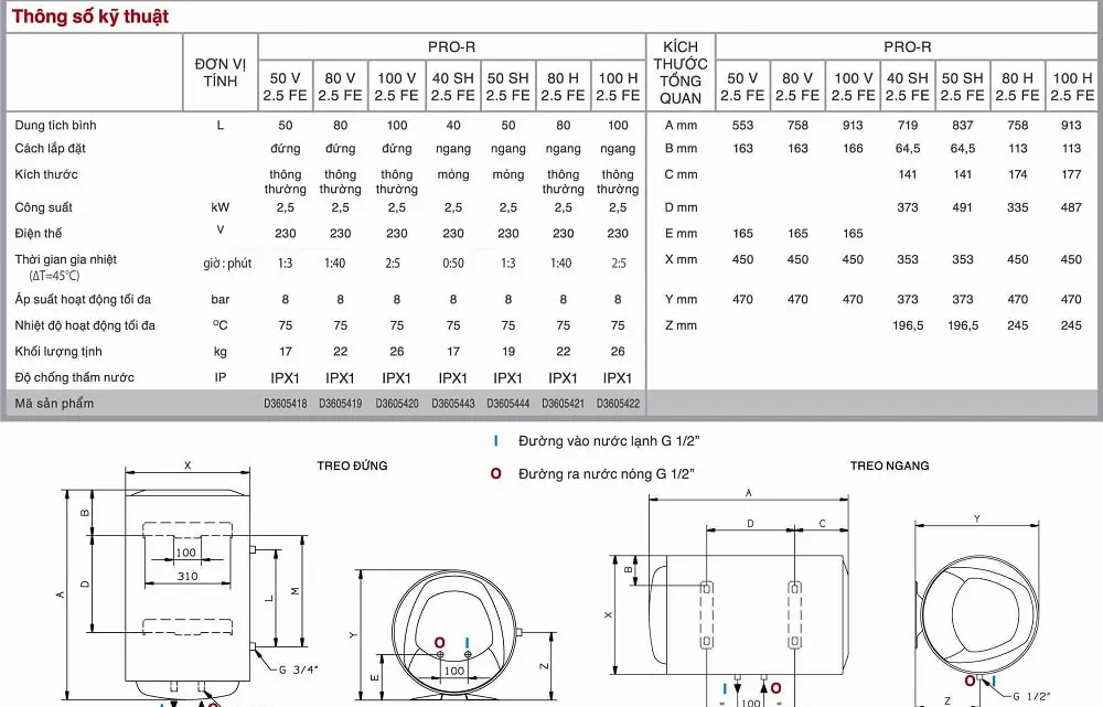 Thời gian gia nhiệt (ΔT=45°C): 1 giờ 40 phút