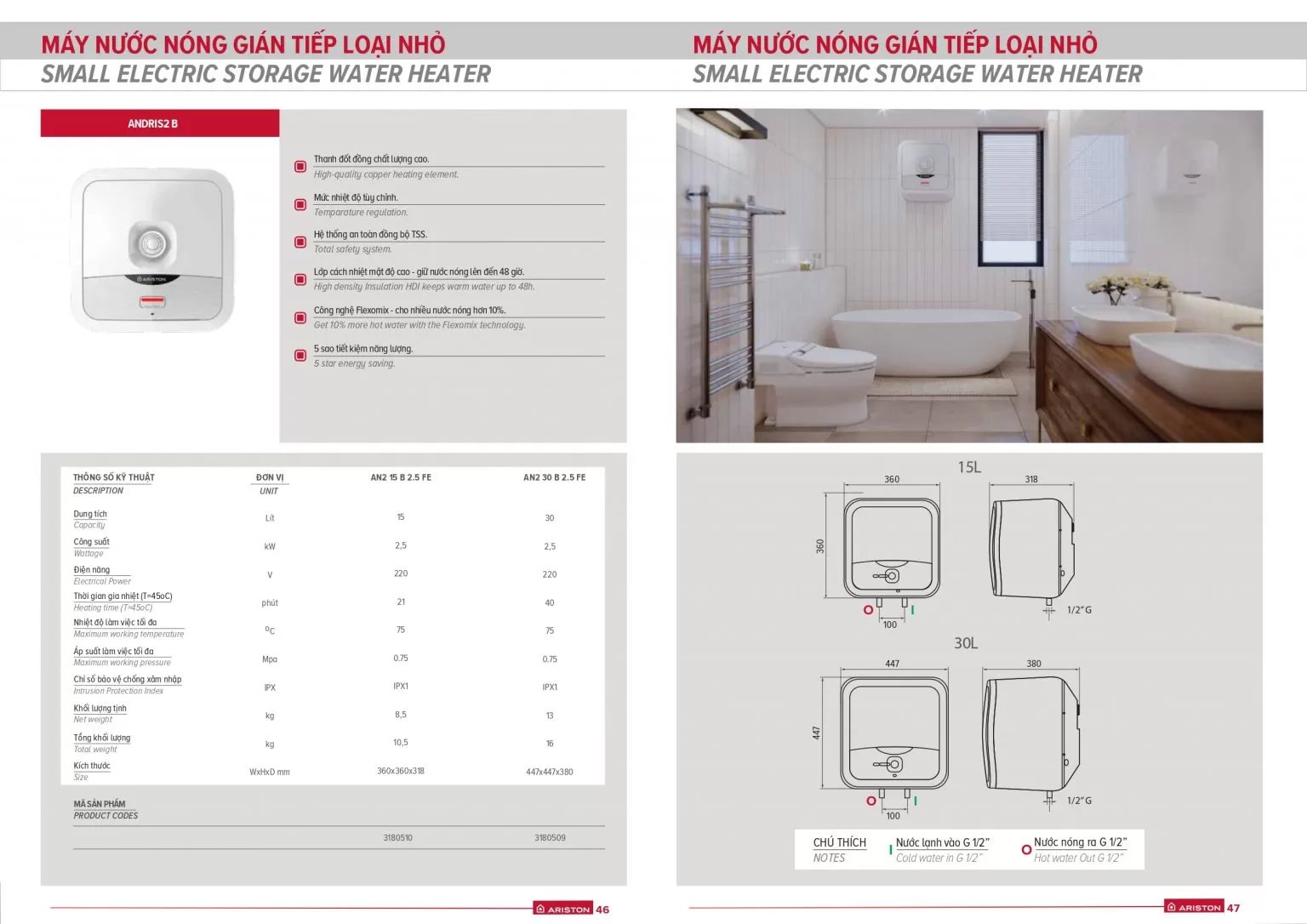 Máy tắm nóng gián tiếp Ariston AN2 15 B 2.5 FE được trang bị khả năng tự ngắt điện, bảo vệ an toàn khi có sự cố nhờ cầu dao chống rò điện ELCB. Lớp vỏ ngoài chống thấm nước cùng bộ ổn định nhiệt TBST, máy nước nóng sẽ tự động ngắt chức năng làm nóng khi nhiệt độ nước vượt mức.
