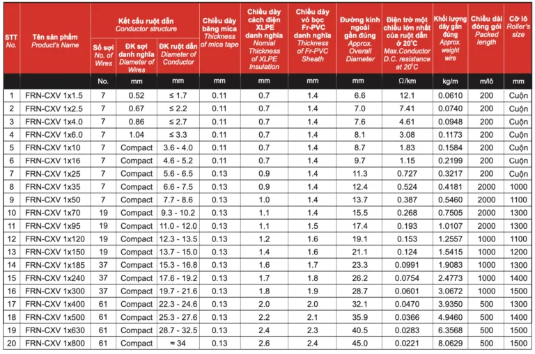 - Kiểu ruột dẫn: Bện tròn và bện tròn ép chặt cấp 2
