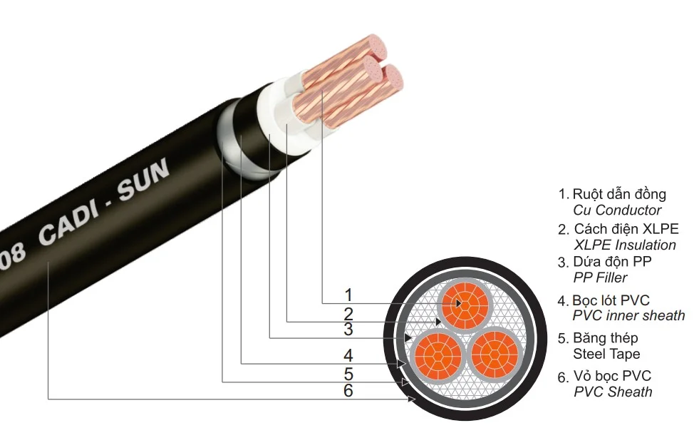 – Quy cách: Cu/XLPE/PVC/DSTA/PVC