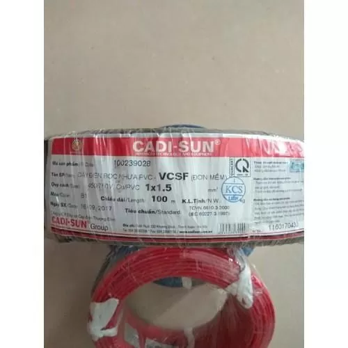 Điện áp danh định: Thường là 450/750V hoặc 0.6/1kV (tùy thuộc vào tiêu chuẩn sản xuất cụ thể của từng dòng dây Cadisun 1.5mm²).
