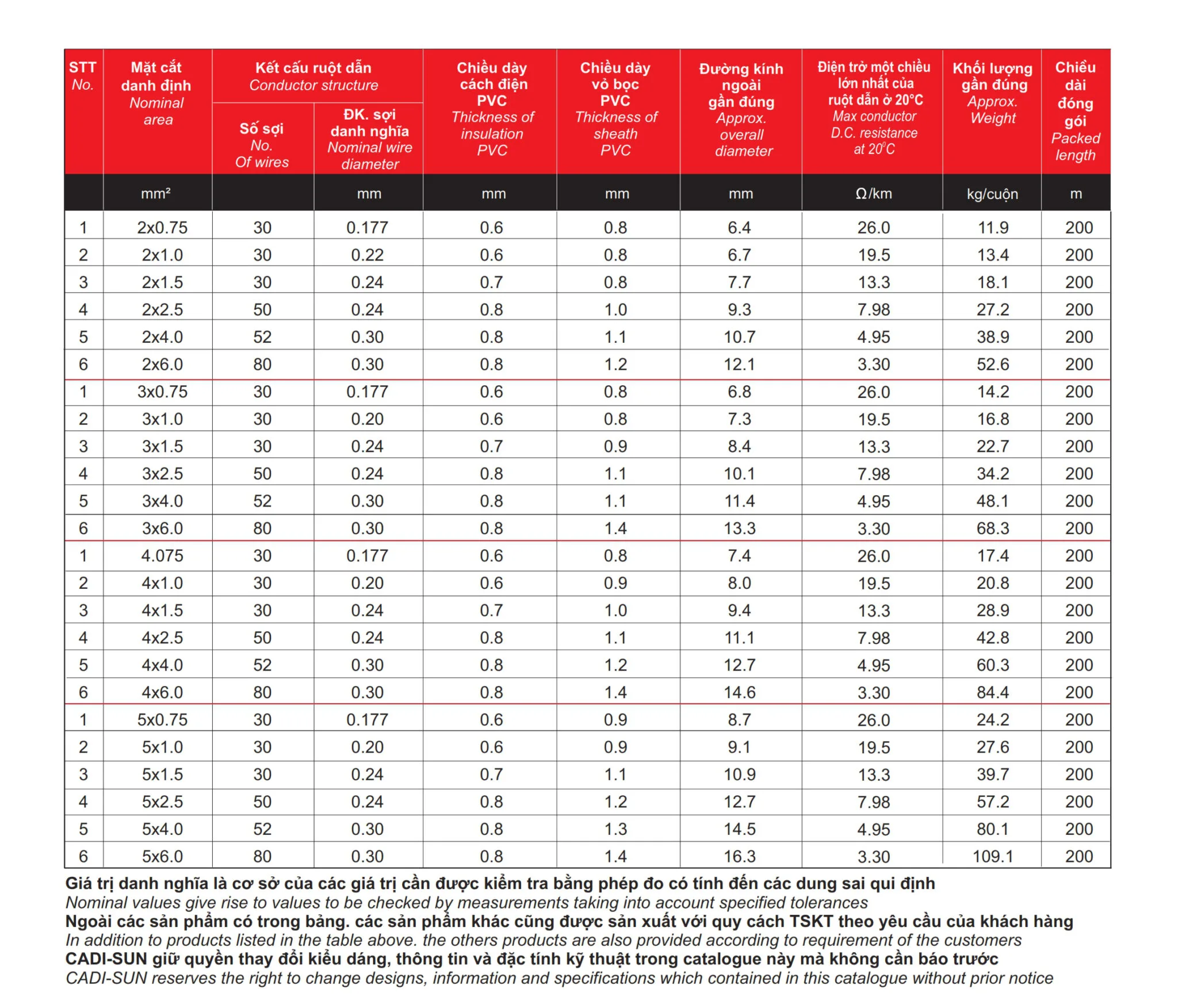 Quy cách | Cu/Fr-PVC/Fr-PVC |