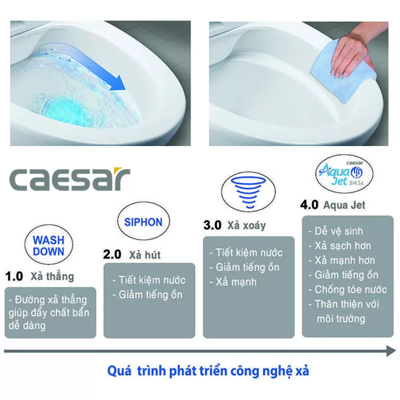 Xả xoáy AQUAJET: xả xoáy siêu mạnh, siêu êm, hạn chế bắn