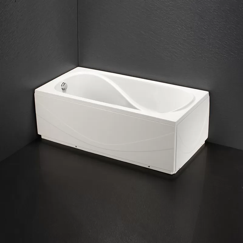 Bồn tắm có chân đỡ bằng inox SUS304 không gỉ sét có thể điều chỉnh chiều cao cho từng địa hình khác nhau 2 mặt hông bồn tắm có mặt yếm che với các đường cong uốn lượn thẩm mỹ.