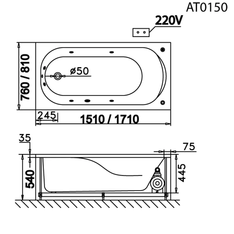 Bồn tắm Caesar MT0150L/R chân yếm là sản phẩm bồn tắm massage dài không chân không yếm cao cấp của thương hiệu thiết bị vệ sinh Caesar.