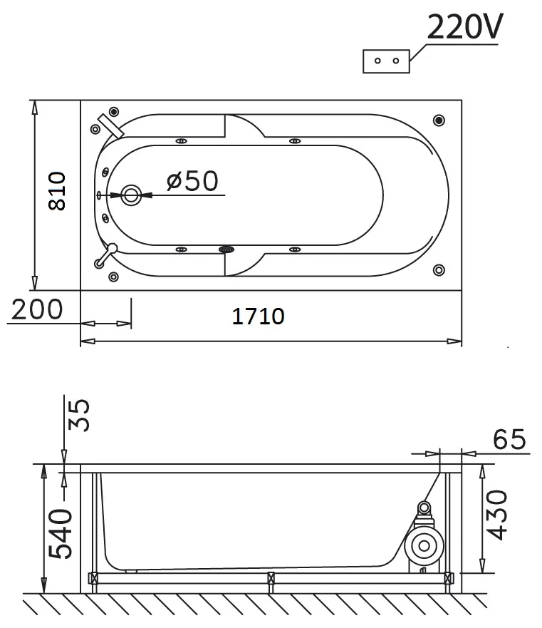Kích thước: 1710 x 810 x 540 (dài x rộng x cao)