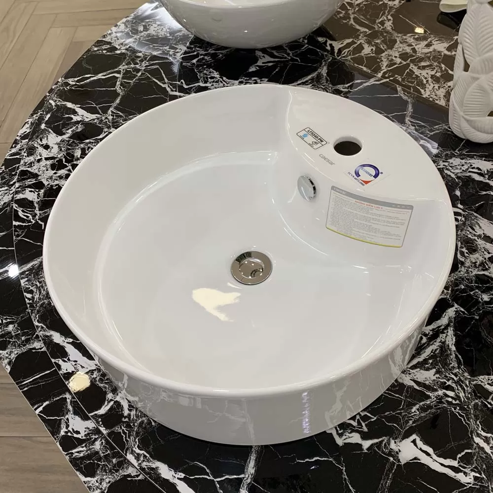 • Chậu lavabo rửa mặt rửa mặt dạng đặt trên bàn kiểu dáng tròn cách điệu sang trọng, phù hợp nhiều phong cách thiết kế nội thất