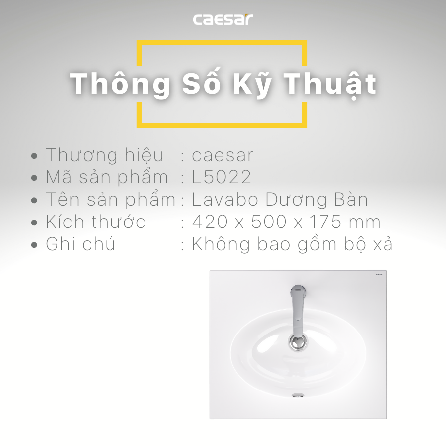 Thông số kĩ thuật chậu lavabo CAESAR L5022 dương vành