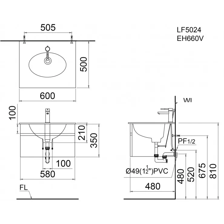 Bản vẽ kỹ thuật chậu rửa Lavabo Caesar Dương Bàn LF5024