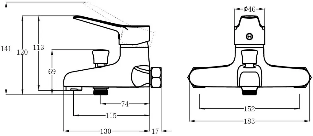 Bản vẽ kích thước vòi sen tắm Caesar S 333 C