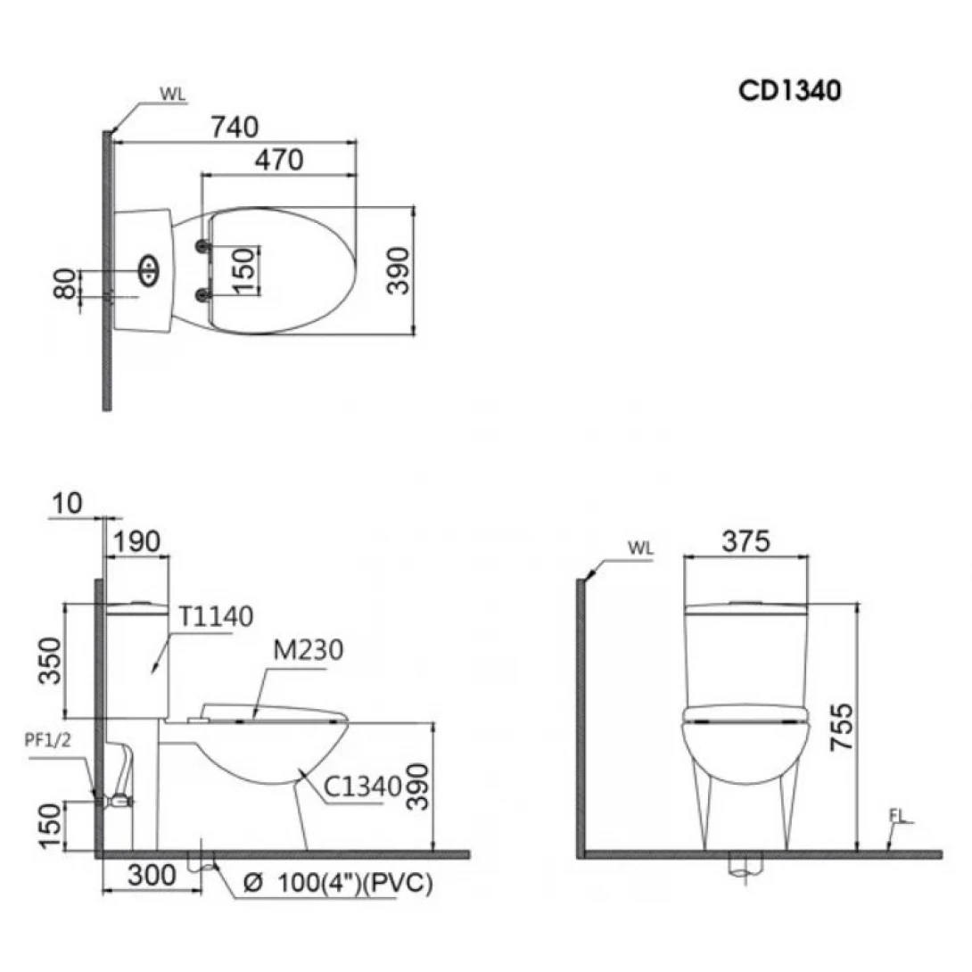 Bồn cầu CAESAR CD1340 hai khối ứng dụng kỹ thuật xả thẳng tiên tiến cuốn trôi mọi vết bẩn