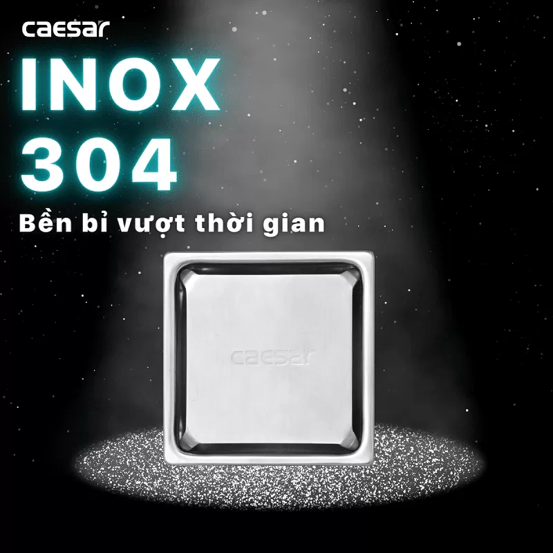 Chất liệu: Phễu thoát sàn nước Caesar 10x10cm ST1010E D60 sản xuất bằng inox SUS304, sản xuất bởi công ty thiết bị vệ sinh Caesar theo tiêu chuẩn Đài Loan cao cấp