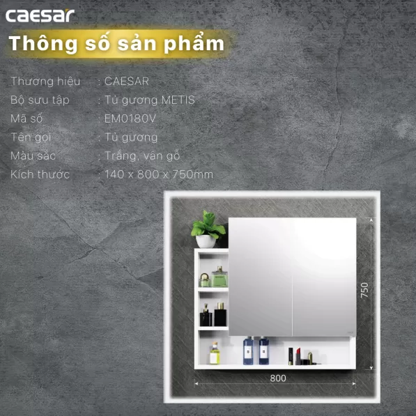 Thông tin của tủ gương Caesar EM0180V