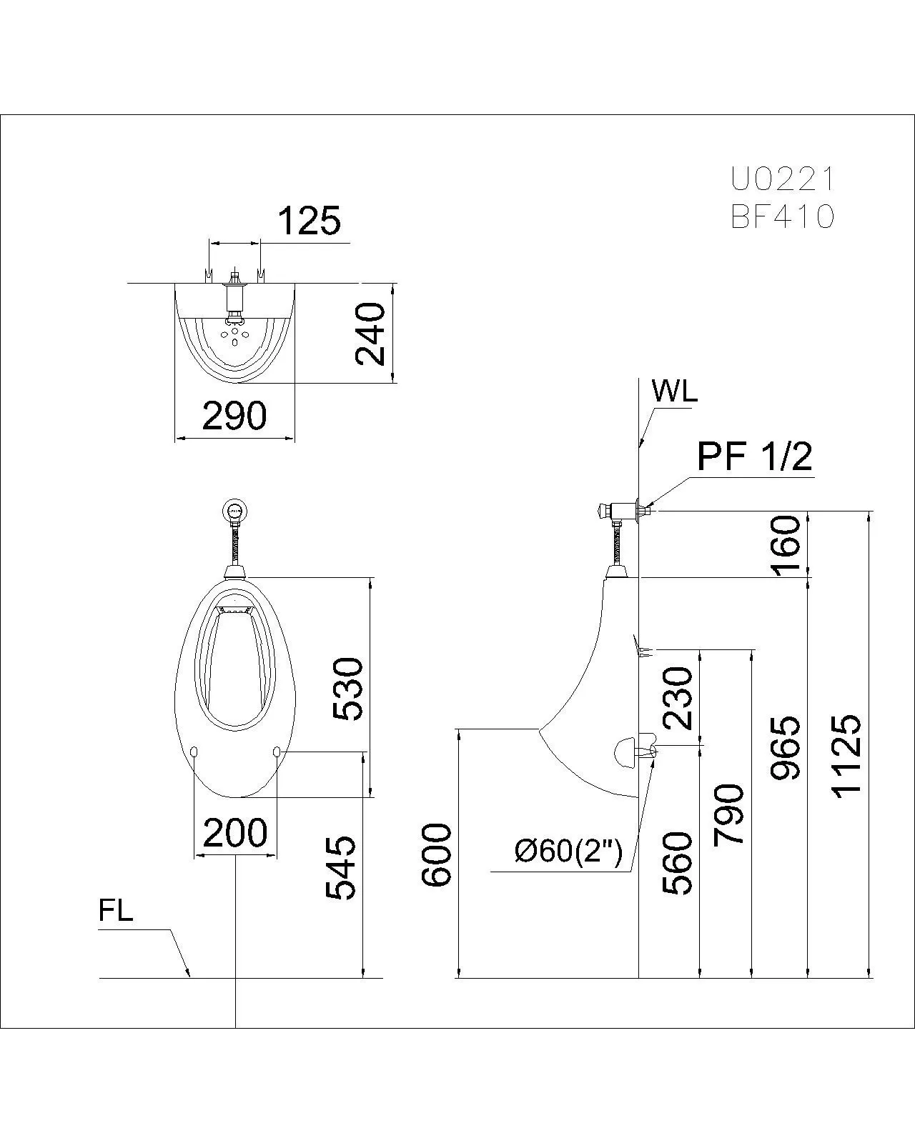 Caesar - Van xả nhấn tiểu nam - BF410 Mã sản phẩm: BF410 Xuất xứ Chính hãng Chất liệu : Đồng mạ Crom Có 1 chế độ xả. Bản vẽ kỹ thuật: