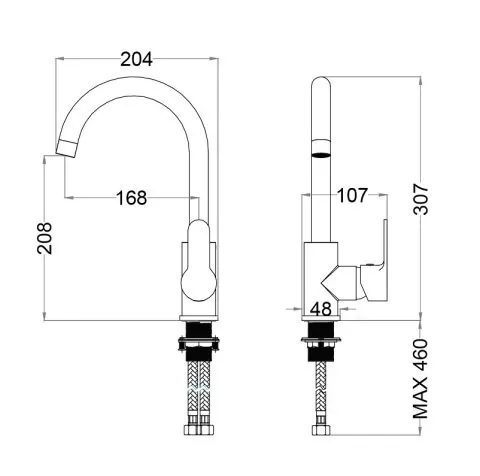 Bản vẽ kỹ thuật vòi rửa chén Caesar K415C nóng lạnh
