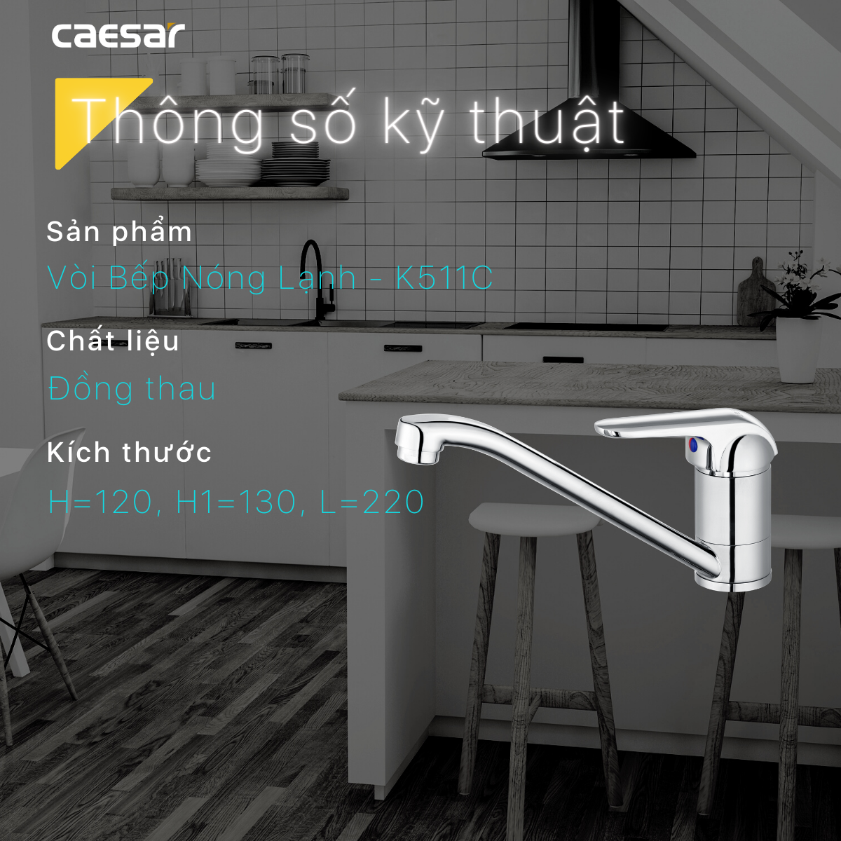 Vòi rửa chén bát Caesar nóng lạnh gắn chậu