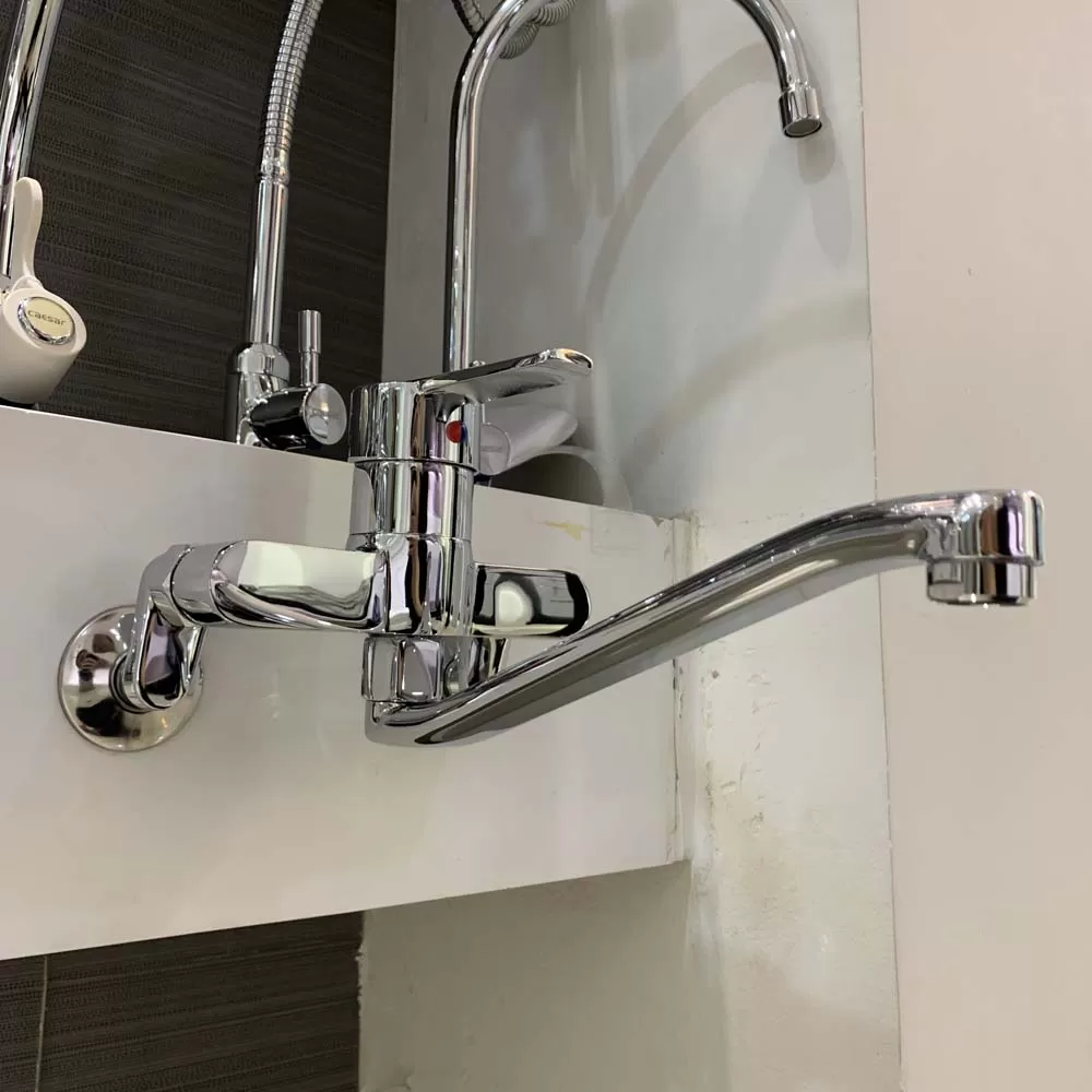 - Thiết kế: Vòi rửa chén nóng lạnh gắn tường