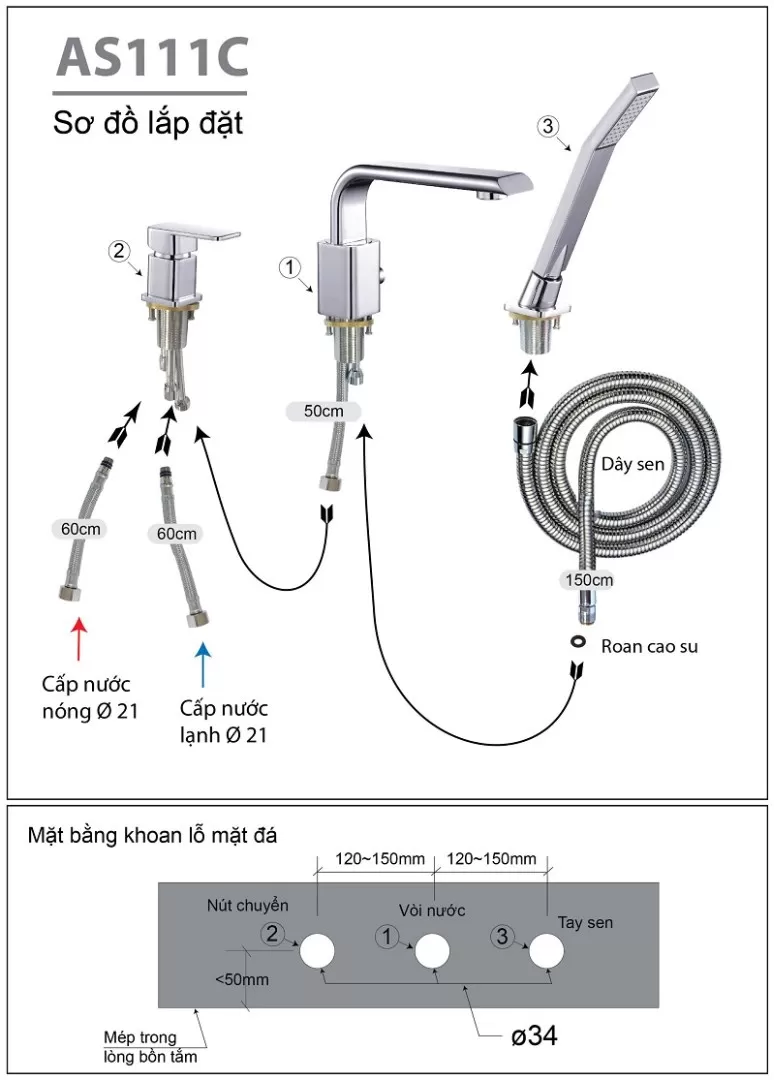 Thuộc dòng vòi sen tắm với 02 nguồn nước Nóng - Lạnh riêng biệt có đầu răng tiêu chuẩn Ø21 có thể gắn cho hầu hết các mẫu sen vòi và lỗ cấp nước hiện nay tại Việt Nam.