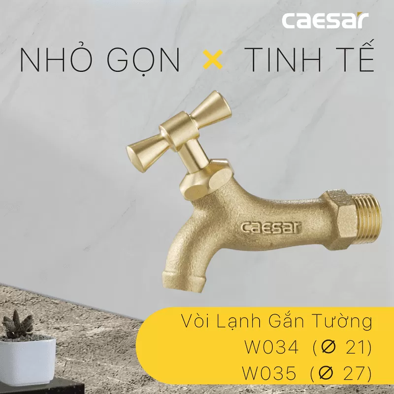 Sản phẩm vòi lạnh gắn tường Caesar W035 sở hữu thiết kế nhỏ gọn, tinh tế phù hợp lắp đặt với nhiều không gian khác nhau mang đến sự sang trọng.