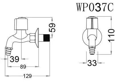 Bản vẽ kỹ thuật Vòi xả Lạnh Gắn Tường Caesar WP037C