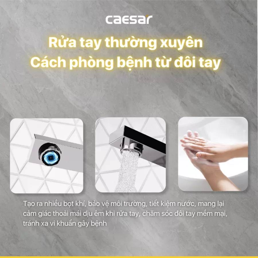 Tiết kiệm nước: Vòi lavabo CAESAR B750CU được trang bị đầu lọc giúp tiết kiệm nước. Đầu lọc giúp trộn bọt khí vào nước, giúp cho nước chảy ra êm ái và hạn chế bắn nước.