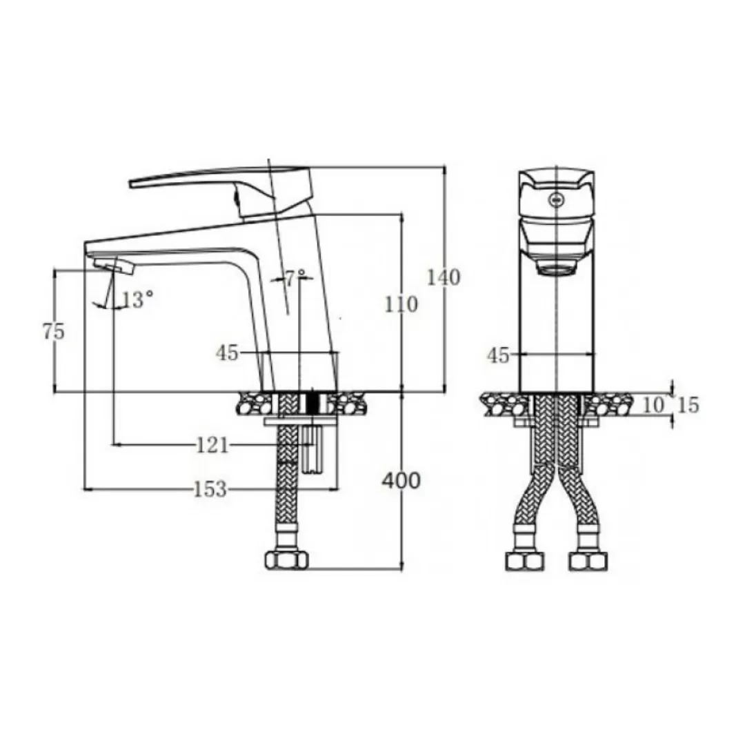 Thông số kĩ thuật vòi Lavabo CAESAR B390CU nóng lạnh xả nhấn