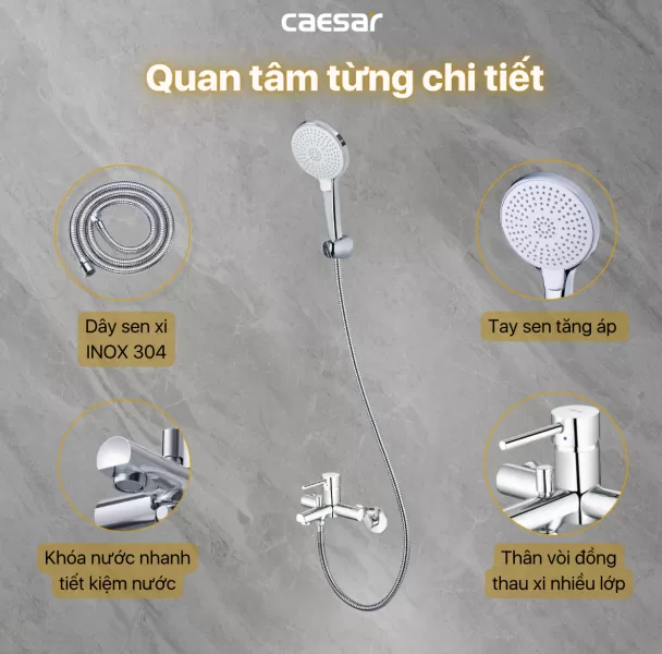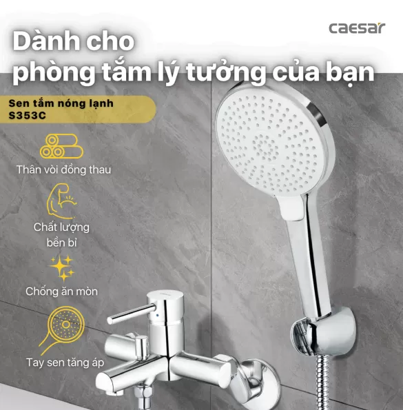 Được sản xuất từ nguyên liệu đồng thau nguyên chất chống ooxxi hóa đã tạo nên sản phẩm vòi sen Caesar S353C chất lượng cao.