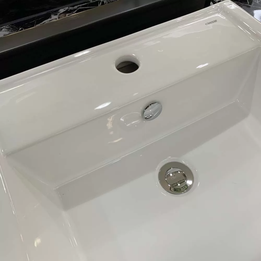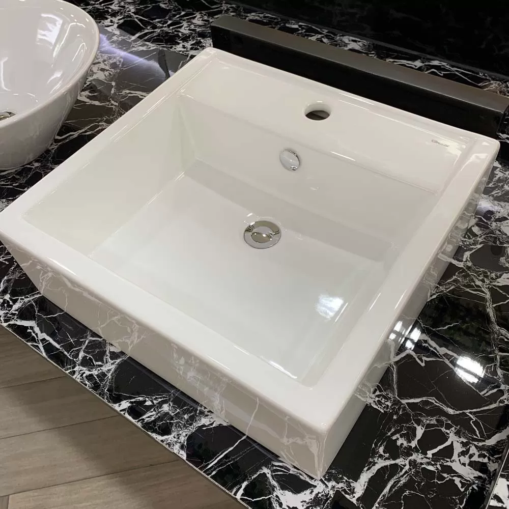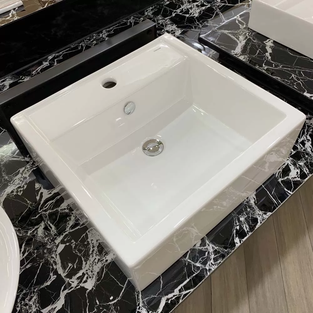 • Chậu rửa mặt dạng đặt trên bàn kiểu dáng vuông vắn sang trọng, phù hợp nhiều phong cách thiết kế nội thất