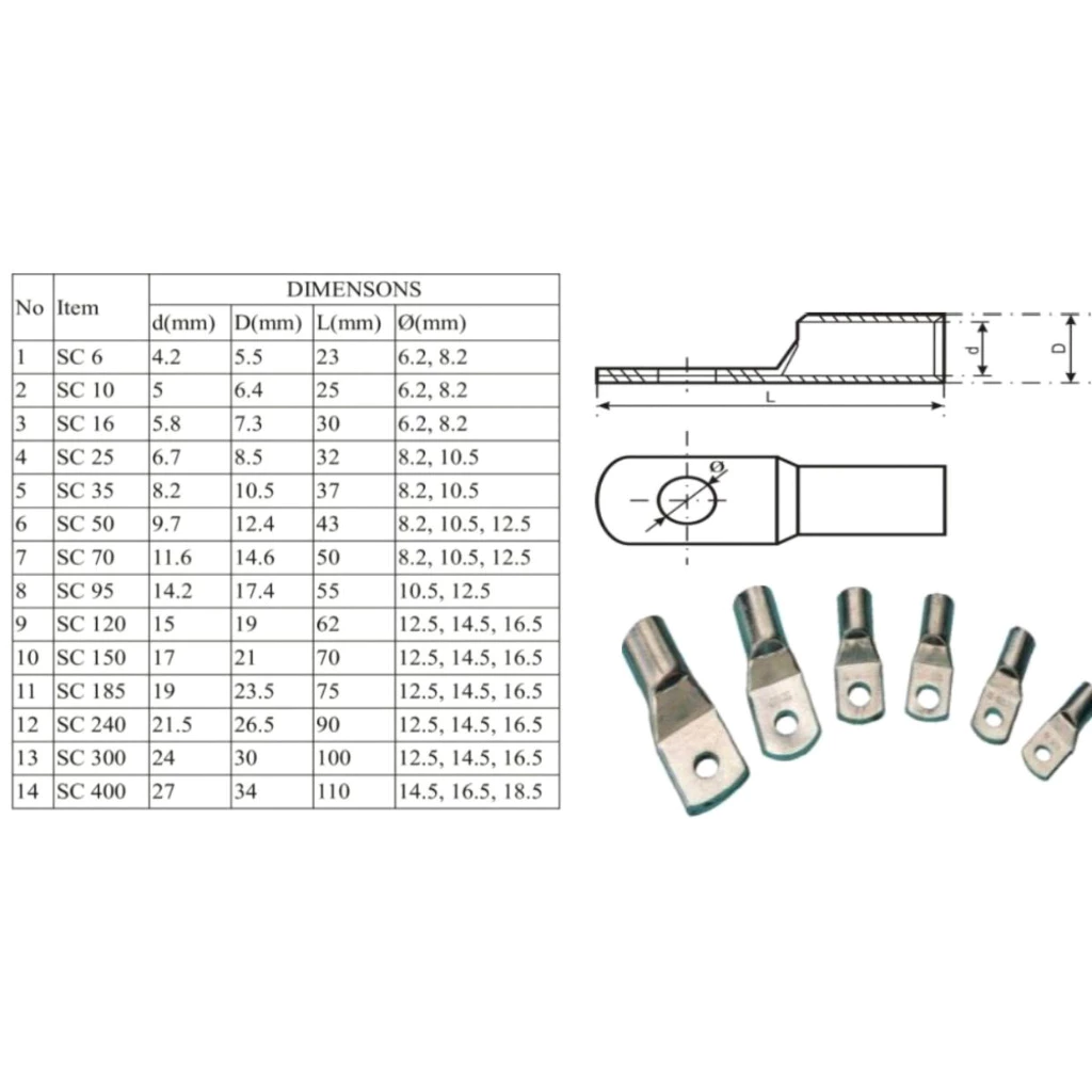 Mô tả : Đầu cos bít trần,đường kính lỗ bắt 6mm