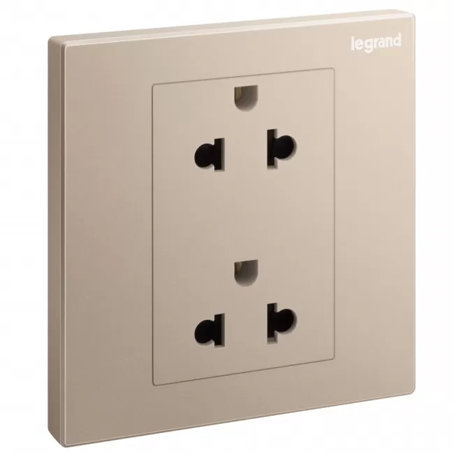 Ổ cắm đôi 2 chấu chuẩn EURO/US 16A 2 cực có dây nối đất màu Rose Gold - 282436-C1