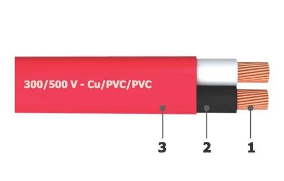 Dây điện dẹt 2 lõi ruột mềm bọc cách điện PVC (dây ô van) 300/500V - Cu/PVC/PVC có kết cấu gồm 03 lớp.