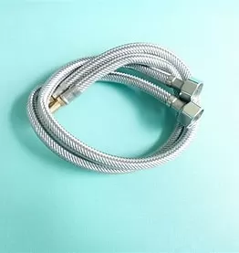 Thiết kế: Dây cấp nước mềm, bọc ngoài bằng lưới inox, đầu kết nối ren trong có gioăng đệm, một đầu có thêm đầu kim (đầu vặn). Sản phẩm được bán theo cặp (2 dây). Màu xanh lá có thể là màu của lớp bọc nhựa bên trong hoặc ký hiệu của dòng sản phẩm.