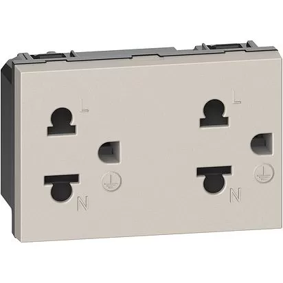 Ổ cắm đôi chuẩn Âu/Mỹ 2P+E 16A 127/250VAC 3 module màu cát