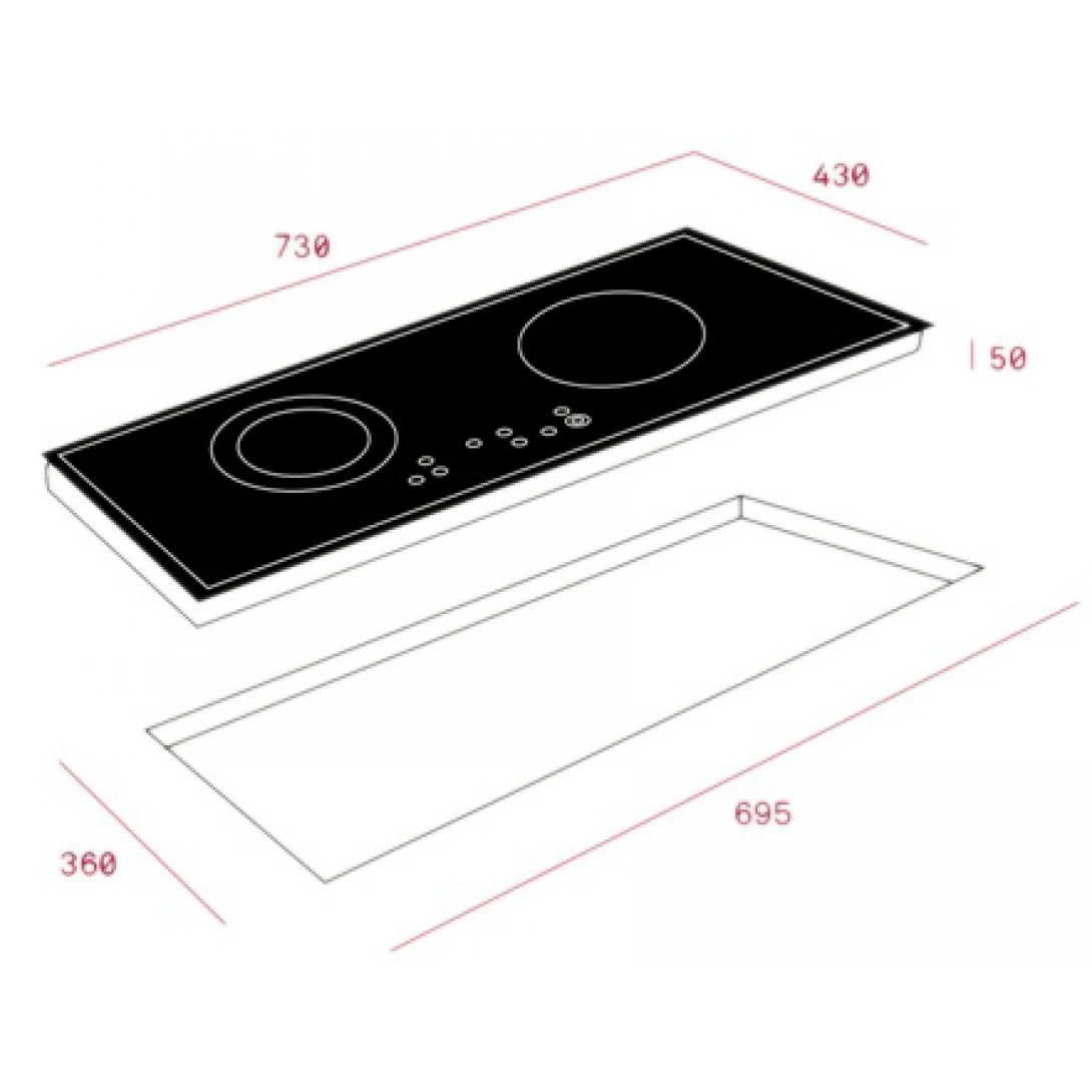 • 02 mặt bếp nấu:01 bếp có vòng nhiệt Ø 240mm; 01 bếp có vòng nhiệt Ø 185mm.