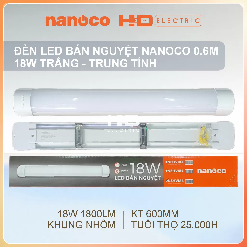 Đèn led bán nguyệt 0.6 m Nanoco có góc chiếu 160 độ, khung đèn được làm bằng nhôm sơn trắng, đầu đèn nhựa ABS, chóa nhựa trắng PC cao cấp.