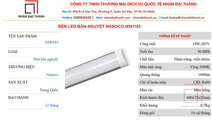 Đèn LED bán nguyệt Nanoco là sản phẩm mới nhất được hãng cho ra mắt nhằm thay thế máng đèn Tube kiểu truyền thống. Đèn được làm bằng chất liệu nhựa trắng và viền nhôm tản nhiệt tốt. Kiểu dáng thiết kế sang trọng hiện đại, tăng tính thẩm mỹ cho ngôi nhà.