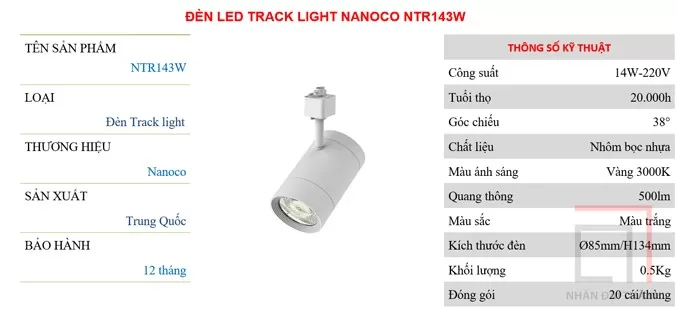 - Đèn Track light chiếu điểm Nanoco với thiết kế nhỏ gọn, kiểm dáng sang trọng, được sử dụng chuyên dùng cho chiếu tranh ảnh, chiếu sáng tủ rượu, tiệm trang sức, rạp hát, showroom. cửa hàng quần áo, nội thất căn hộ...