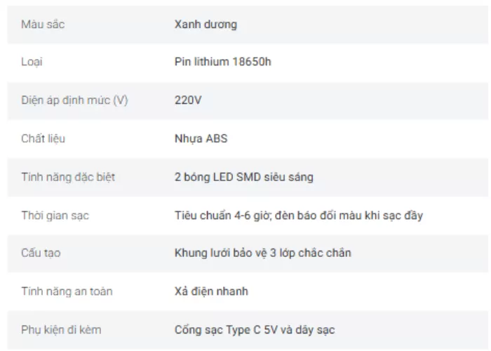 Thời gian sạc của đèn pin là khoảng 4-6 giờ và báo đổi màu khi sạc đầy, dễ dàng nhận biết để tháo sạc kịp đúng lúc.