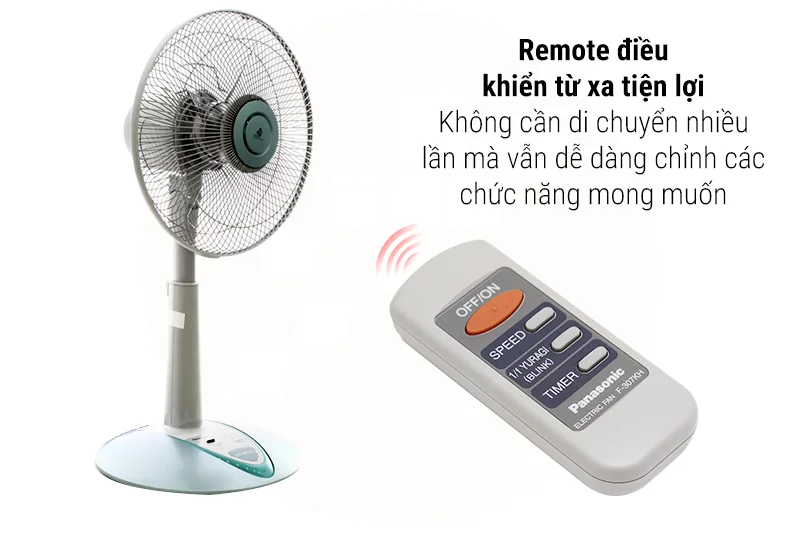 Quạt đứng màu xanh Panasonic F307KHB sử dụng tiện lợi với remote điều khiển từ xa với 3 tốc độ phù hợp với nhu cầu của người sử dụng mà không cần di chuyển nhiều mà vẫn chỉnh được tốc độ gió và tiết kiệm được thời gian.