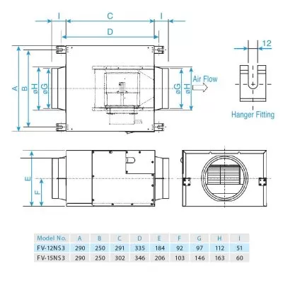 Bản vẽ kỹ thuật quạt hút cabinet Panasonic FV-12NS3