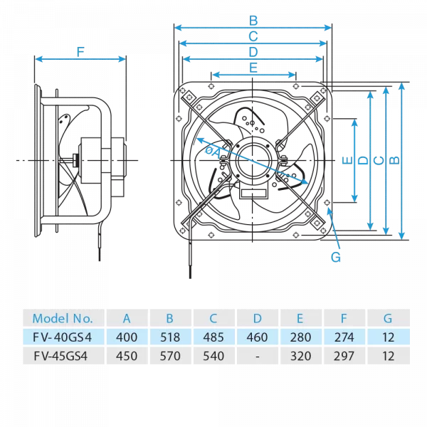 Thiết kế cánh quạt đặt biệt hình lượn sóng giúp tạo luồng không khí ổn định và êm ái. Khung đỡ mô tơ kết hợp với cánh quạt giúp quạt có thể vận hành với áp suất tĩnh cao. Bề ngoài quạt thiết kế bằng hợp kim thép và sơn tĩnh điện có tính kháng gỉ cao làm tăng độ bền cho quạt.
