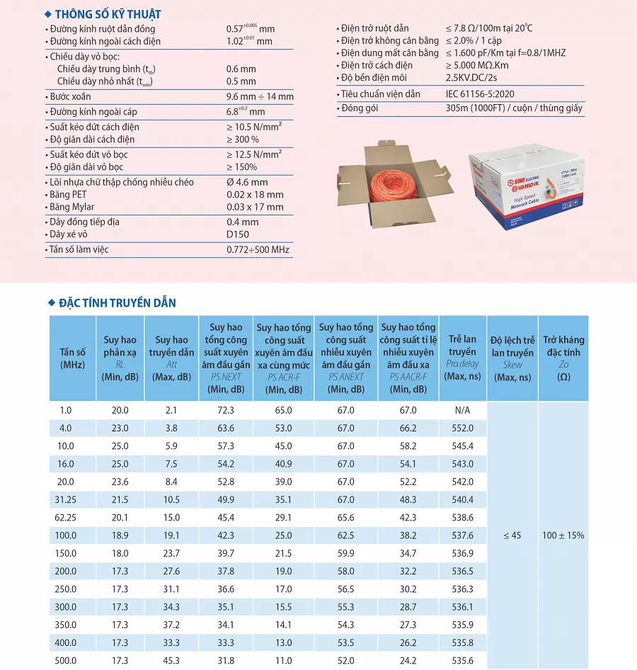 Phần vỏ cáp mạng được làm từ nhựa PVC, có khả năng chống cháy đạt tiêu chuẩn quốc tế, có khả năng chống chịu được nhiệt độ cao lên đến khoảng 60 độ C. Dây mạng cao cấp SINO Cat6 có thể đáp ứng được tất cả các yêu cầu tối đa về hiệu suất tiêu chuẩn của TIA/EIA 568-B.2 và ISO/IEC 11801 Class D.