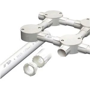 SP - Chia 4 ngả thấp 32 - V240/32/4 Cấu tạo: Nhựa PVC nguyên sinh, dạng khối dẹt với 4 đầu ra đều