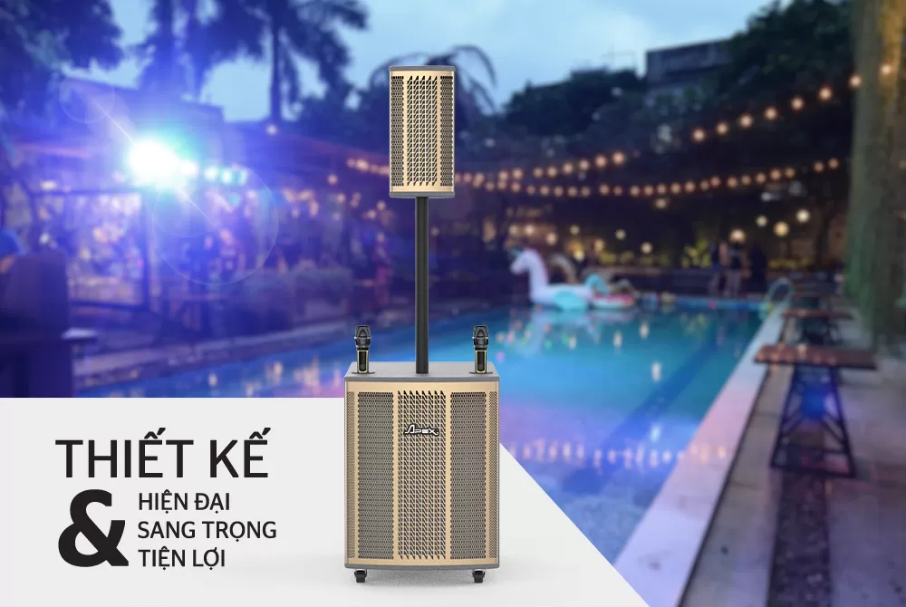 Loa điện Apex APA3606 có thiết kế đẹp mắt với chất liệu là thùng gỗ sơn chống trầy với 4 bánh xe thuận tiện di chuyển, mặt lưới bằng kim loại sơn tĩnh điện bền bỉ phát âm thanh hay, hỗ trợ loa phụ cho âm thanh vang dội nhờ thiết kế tối ưu gồm một loa lớn và một loa nhỏ. Cùng tông màu nâu ghi sang trọng làm chủ đạo, sản phẩm giúp nâng tầm sang trọng cho mọi không gian sử dụng.