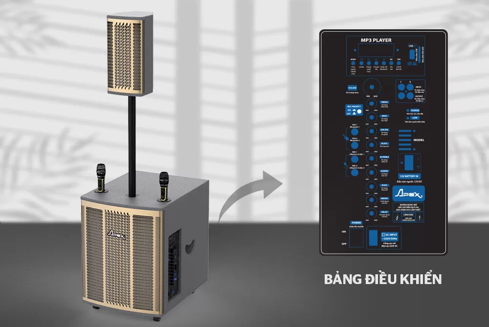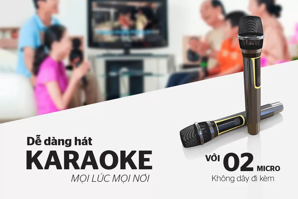 Bạn có thể phối ghép dễ dàng cùng với loa và bắt đầu trình diễn cá nhân đầy tự tin với các bản nhạc mà mình yêu thích với 2 micro karaoke chuyên dụng được tặng kèm khi mua loa Apex. Bạn sẽ có thể cùng chia sẻ giai điệu với bạn bè, tạo nên những giờ giải trí thật sôi động, thự giãn.