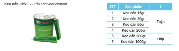 Tiền Phong - Keo dán PVC 30g (20/120) Hợp chất gồm dung môi Cyclohexanone, nhựa PVC hoà tan, chất tạo sự kết dính cao. Dạng sịt, sánh, đựng trong lọ nhựa hoặc lon thiếc.