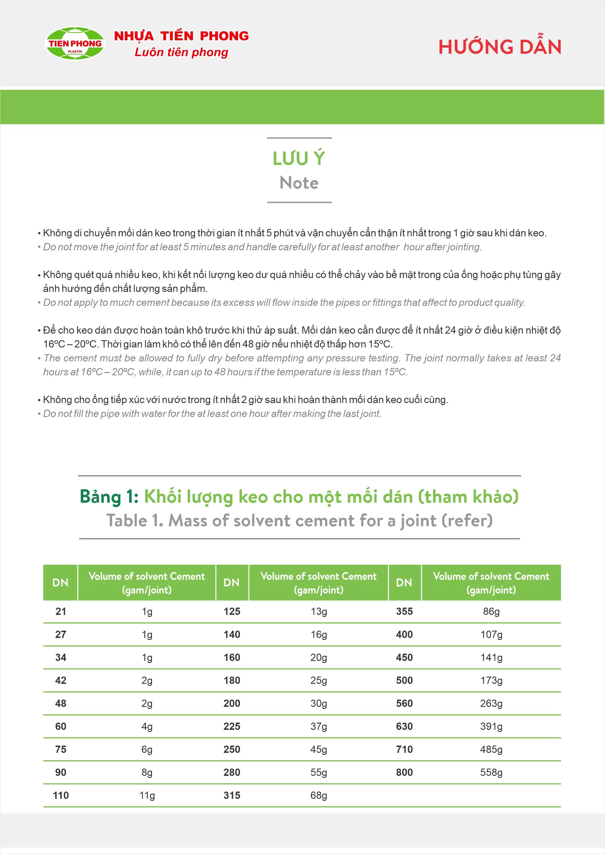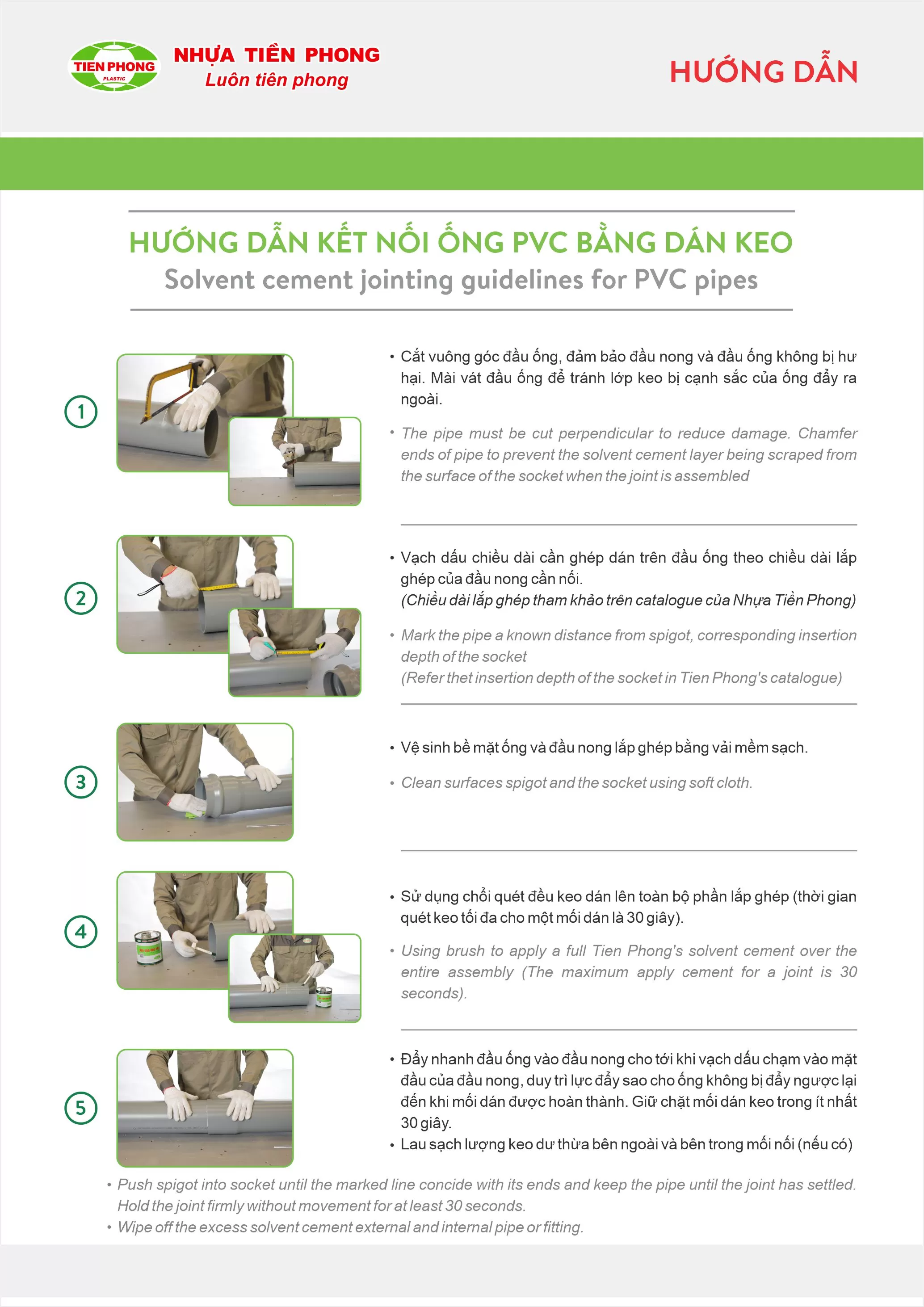 Keo dán ống PVC/uPVC là một loại chất kết dính chuyên dụng, được sử dụng để tạo liên kết chắc chắn và kín khít giữa các ống nhựa PVC và phụ kiện PVC trong các hệ thống đường ống nước. Keo dán PVC hoạt động bằng cách làm mềm bề mặt nhựa PVC, cho phép chúng hòa tan vào nhau và tạo thành một mối nối liền mạch khi khô.Keo dán ống PVC tiền phong sản xuất theo tiêu chuẩn ISO 1452:2009 (ISO - Hệ mét) và tiêu chuẩn BS EN ISO 1452:2009 (BS - Hệ inch). Được sản xuất theo tiêu chuẩn châu âu. Có tính kết dính cao