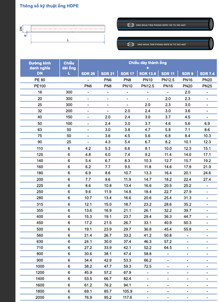 Ống HDPE PE100 Tiền Phong PN8 ngày càng được sử dụng nhiều do những đặc tính quý báu của nó hơn hẳn tính chất của các loại ống nhựa khác như: