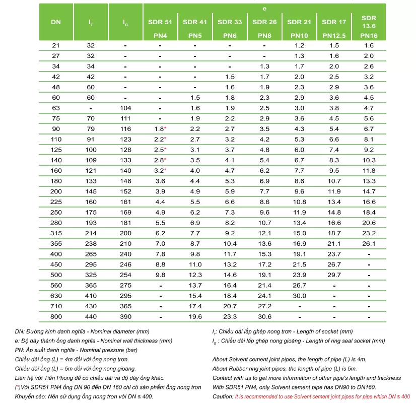 Dưới đây là toàn bộ thông tin kỹ thuật của Ống uPVC Tiền Phong Hệ Mét (ISO):