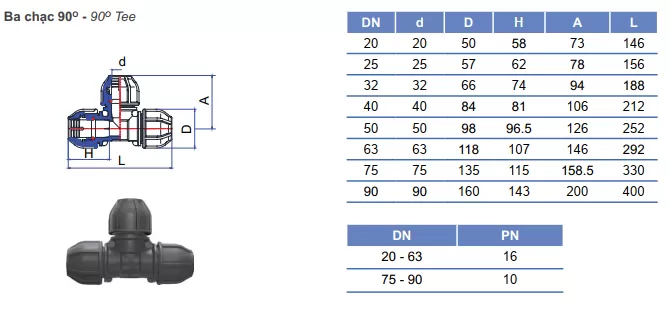 Tê PE 20 - PN16 là một phụ kiện ống được sản xuất bởi Công ty Cổ phần Nhựa Thiếu niên Tiền Phong, một trong những nhà sản xuất ống nhựa hàng đầu và uy tín nhất tại Việt Nam. Sản phẩm này thuộc dòng phụ kiện dành cho ống nhựa HDPE (High-Density Polyethylene).